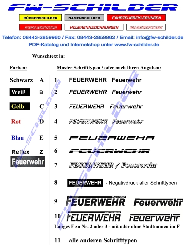 inklusive 1- oder 2-zeiligen Rückenaufdruck in den Farben: weiß, schwarz, rot, königsblau, zitronengelb, silber-reflex