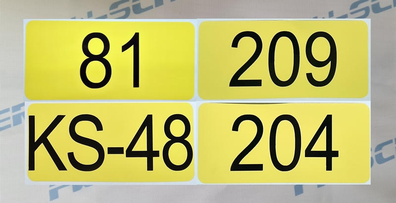 Gelber Aufkleber mit abgerundeten Ecken und mit schwarzer Ordnungsnummer beschriftet